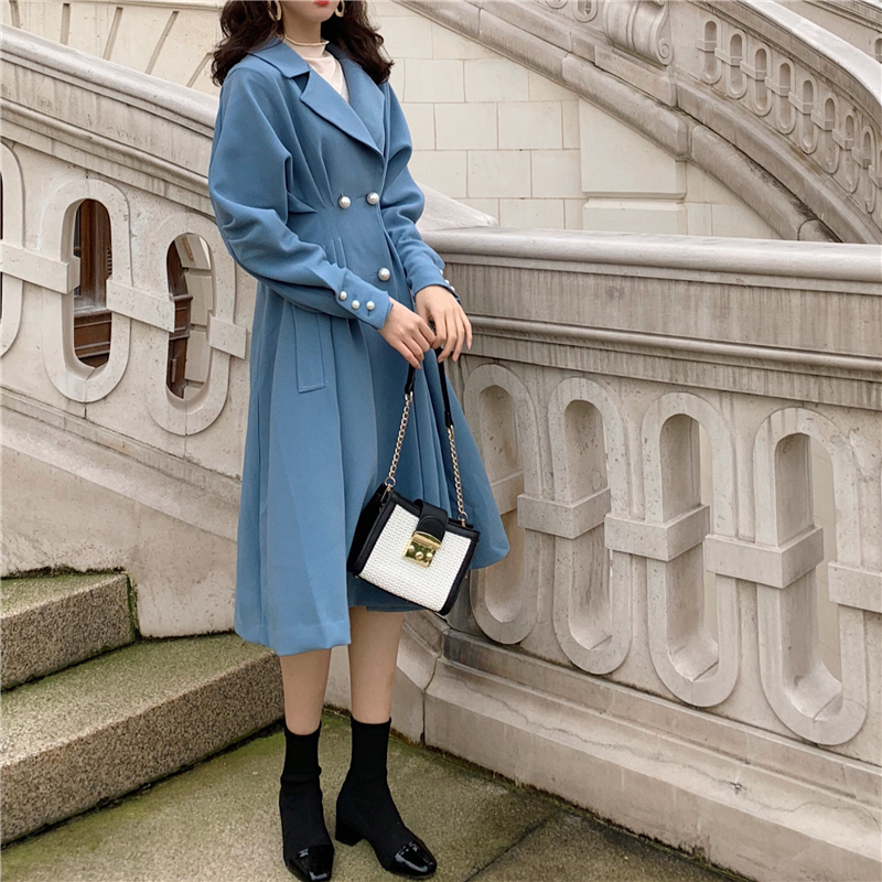 外套女春秋2018新款時尚chic簡約寬松顯瘦中長款呢子外套女配腰帶