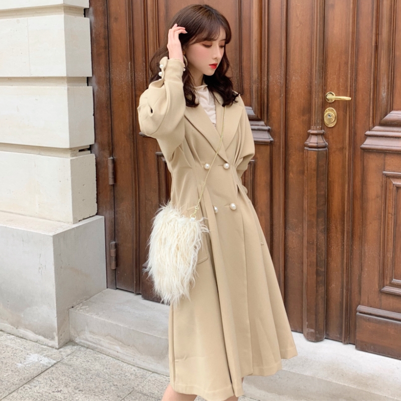/ 復古韓國chic風時尚收腰氣質中長款毛呢外套女蝙蝠袖釘珠呢子大衣