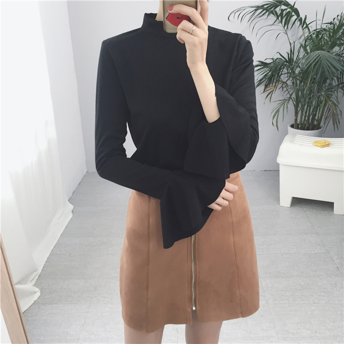 / 韓國chic秋冬簡約百搭半高領厚實喇叭袖套頭修身打底衫T恤女