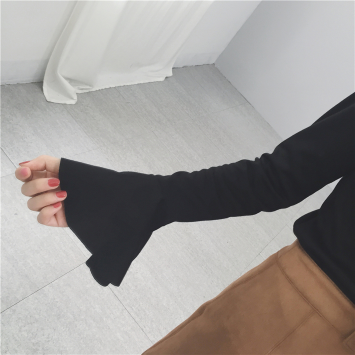 韓國chic秋冬簡約百搭半高領厚實喇叭袖套頭修身打底衫T恤女
