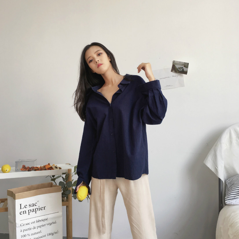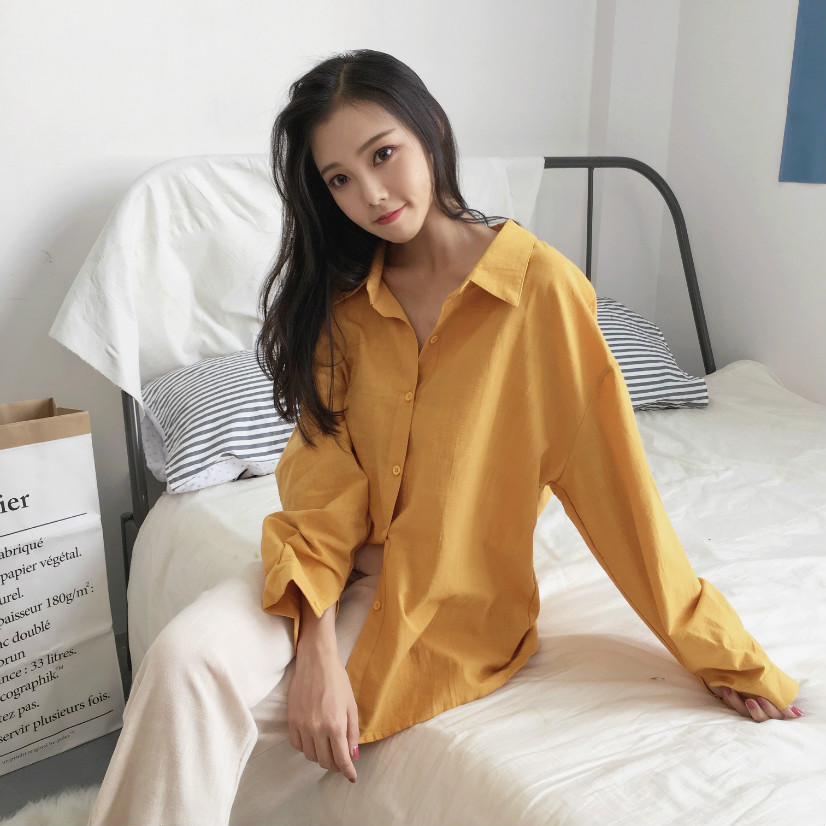 / 早春新款女裝粉色甜美百搭中長款寬松顯瘦學生長袖打底襯衣襯衫女