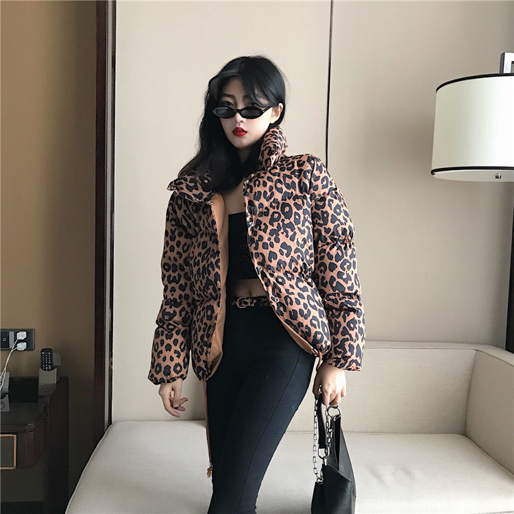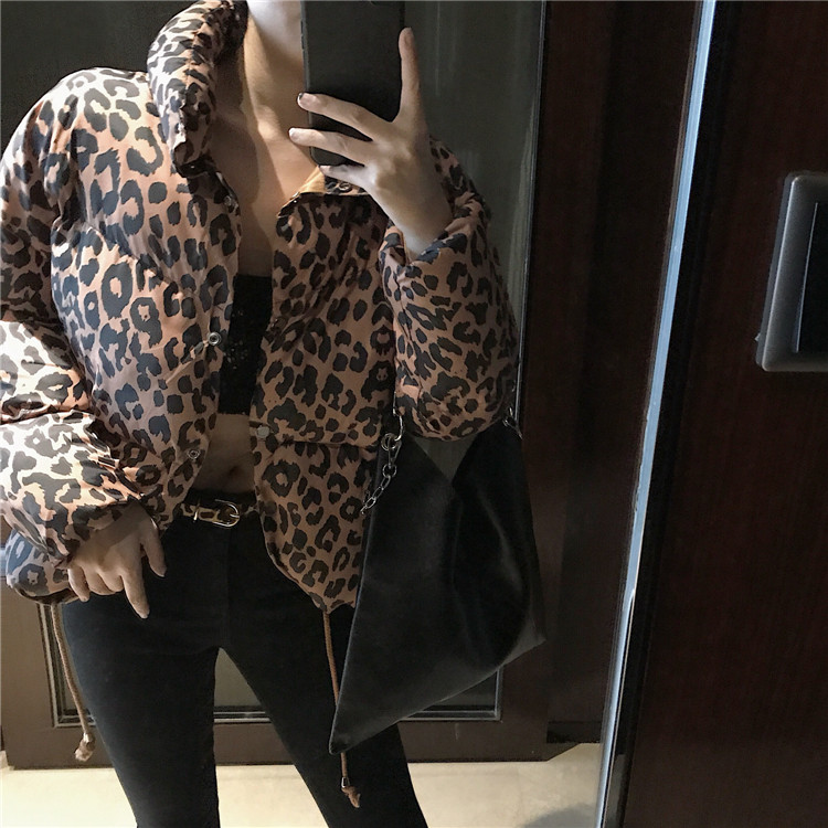 / 2018秋冬新款時尚洋氣豹紋高領寬松百搭面包服