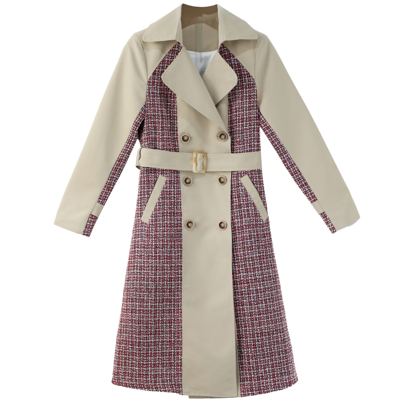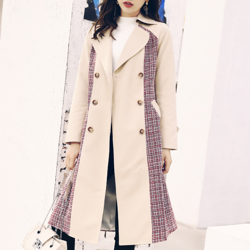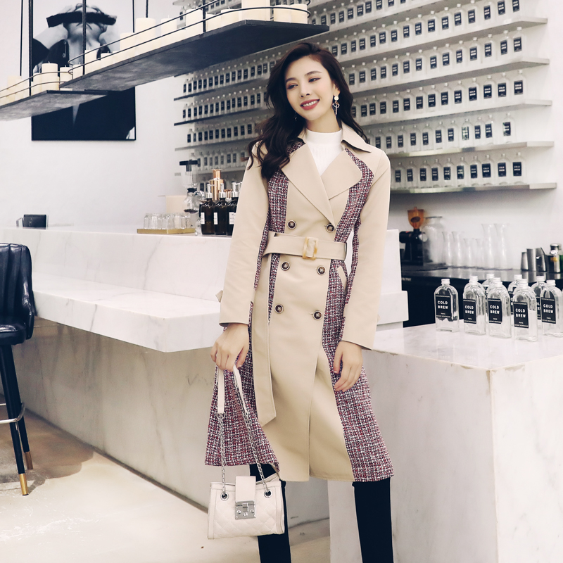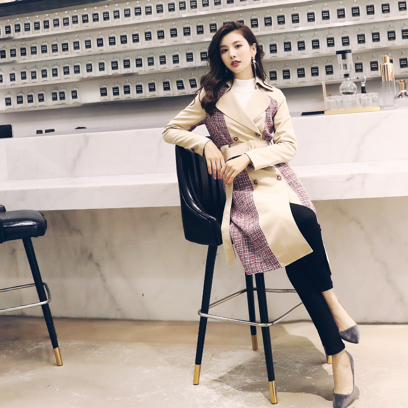 S秀英倫風2018冬季新款系帶紐扣拼接網紅大衣長袖中長款時尚風衣