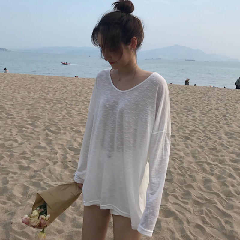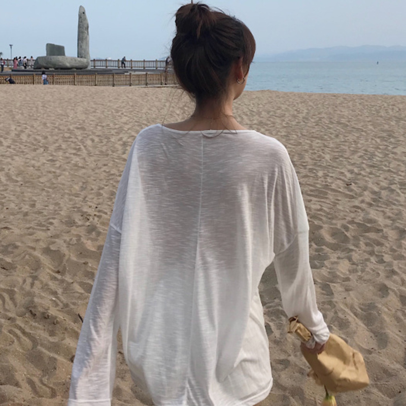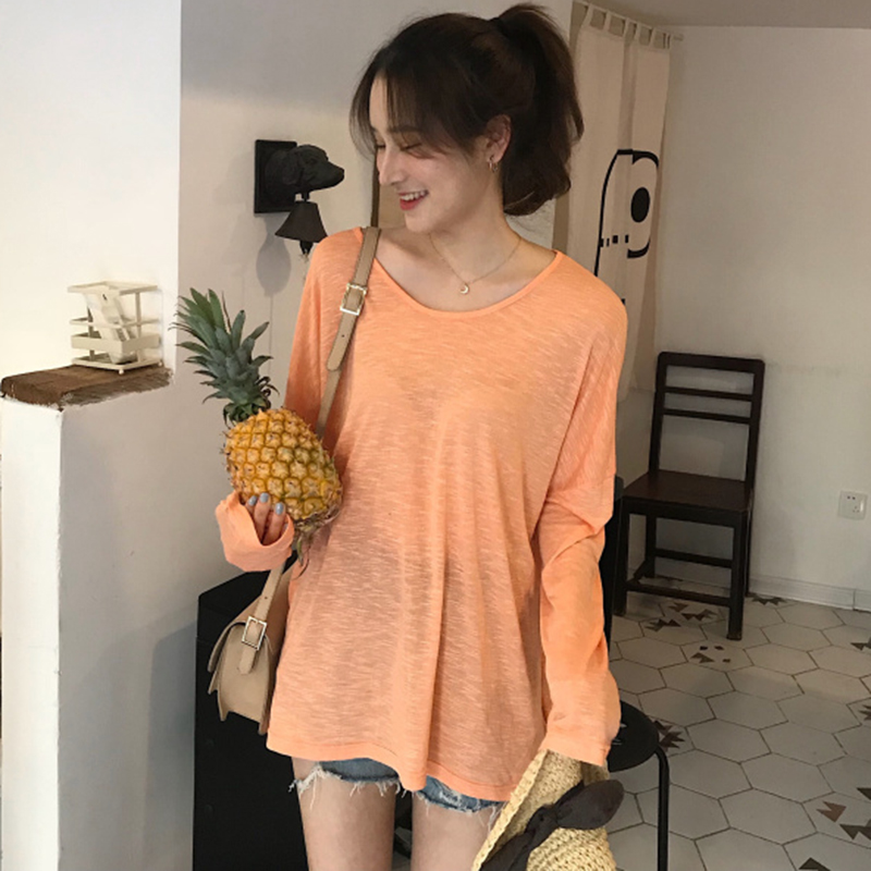 2018夏裝新款韓版寬松顯瘦薄款防曬衣簡約風純色套頭空調衫上衣女