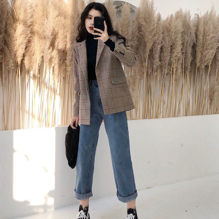 秋裝女2018新款復古港味九分褲學生韓版寬松高腰原宿直筒牛仔褲女