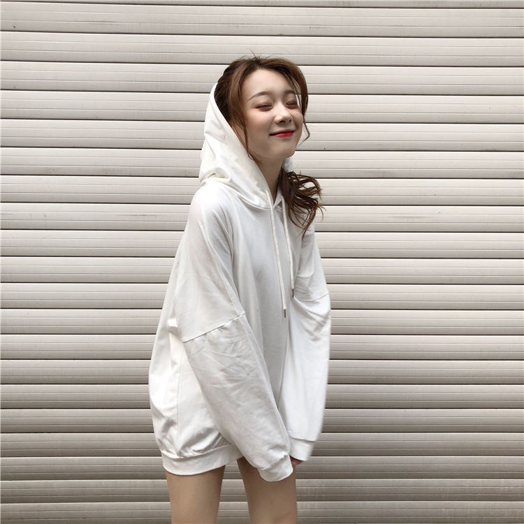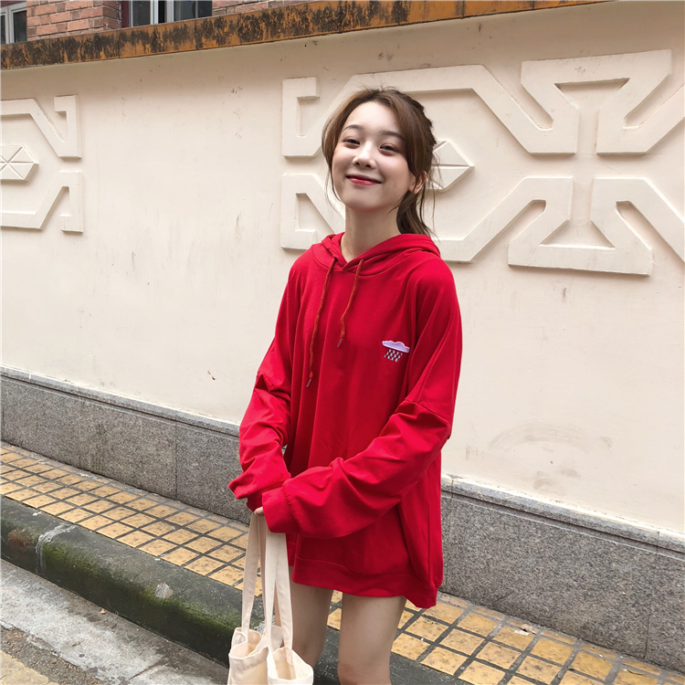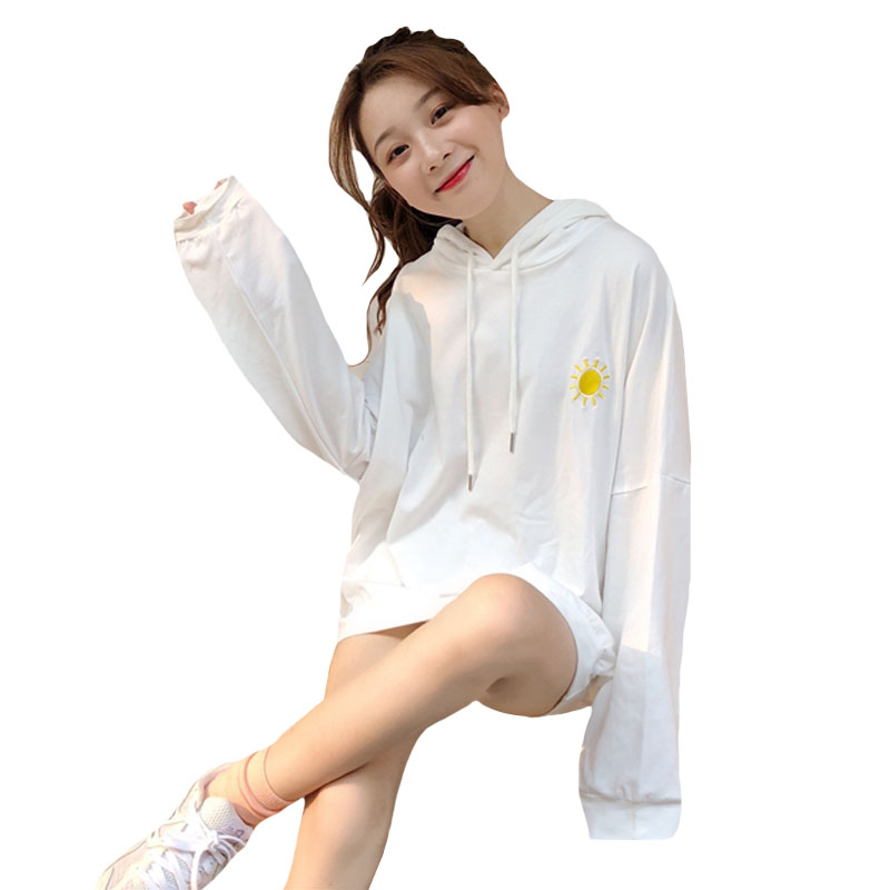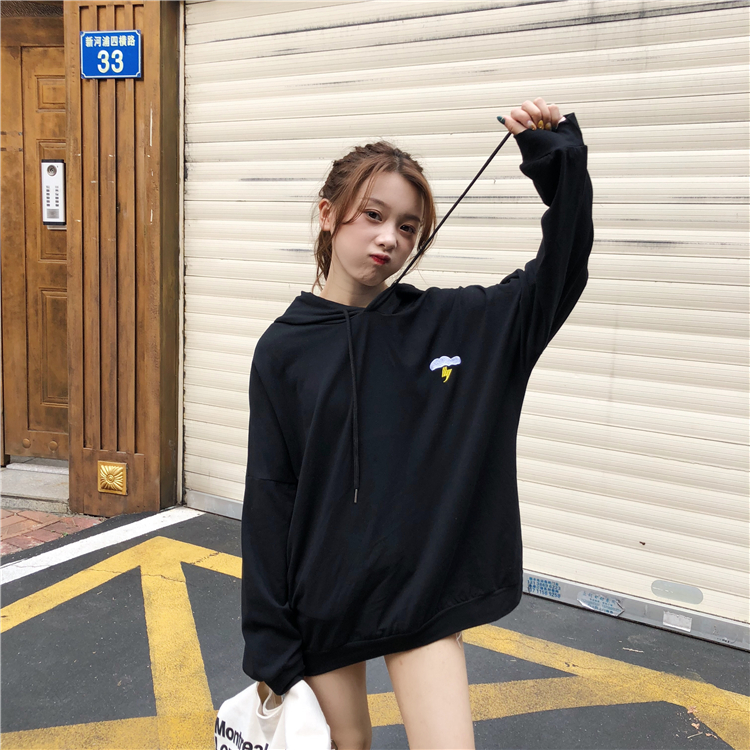 / 2018新款秋季韓版中長款天氣刺繡薄款BF風寬松連帽超火衛衣外套女