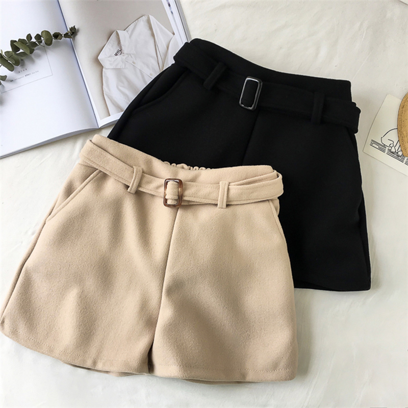 褲子女秋冬裝2018新款韓版毛呢短褲學生高腰休閑褲闊腿呢子靴褲潮