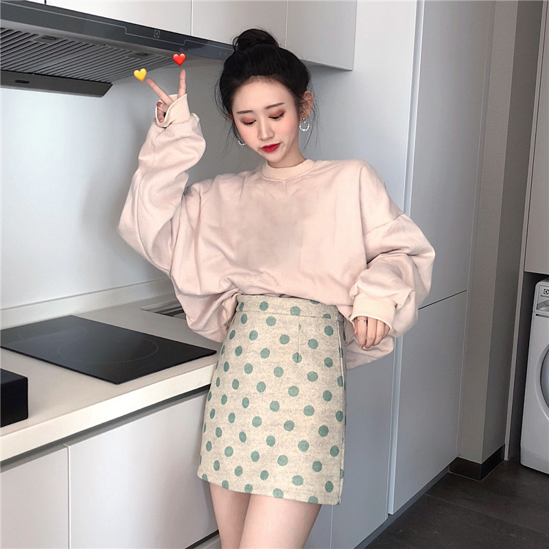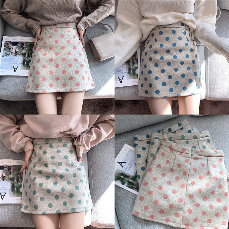 / 裙子女秋冬新款韓版chic高腰顯瘦氣質包臀復古百搭波點毛呢短裙潮