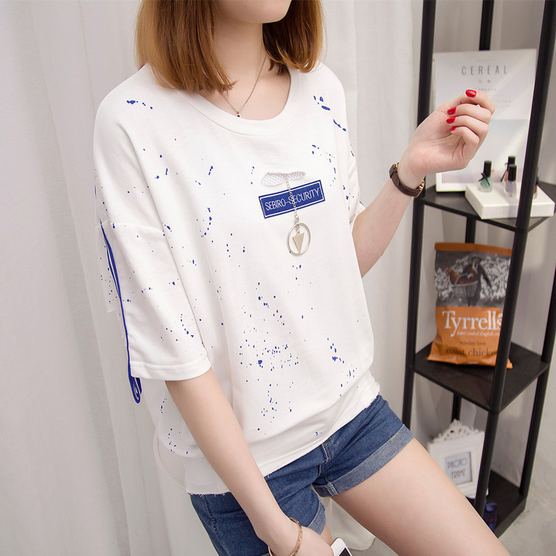/ 短袖上衣女夏裝新款破洞白色t恤女春季韓版打底百搭體恤衫潮