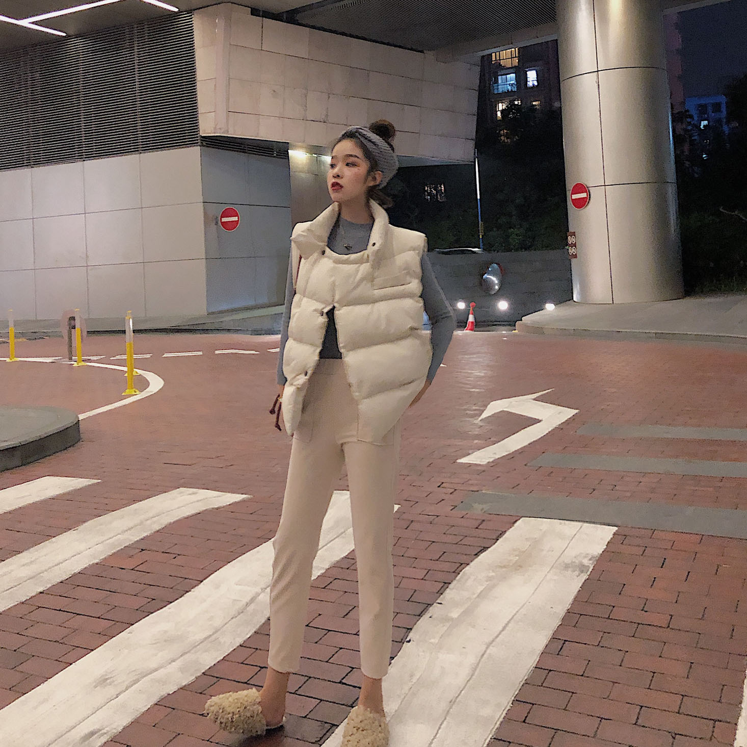 女神套裝秋冬oversize棉馬甲女+灰色針織衫+束腳顯瘦毛呢褲三件套