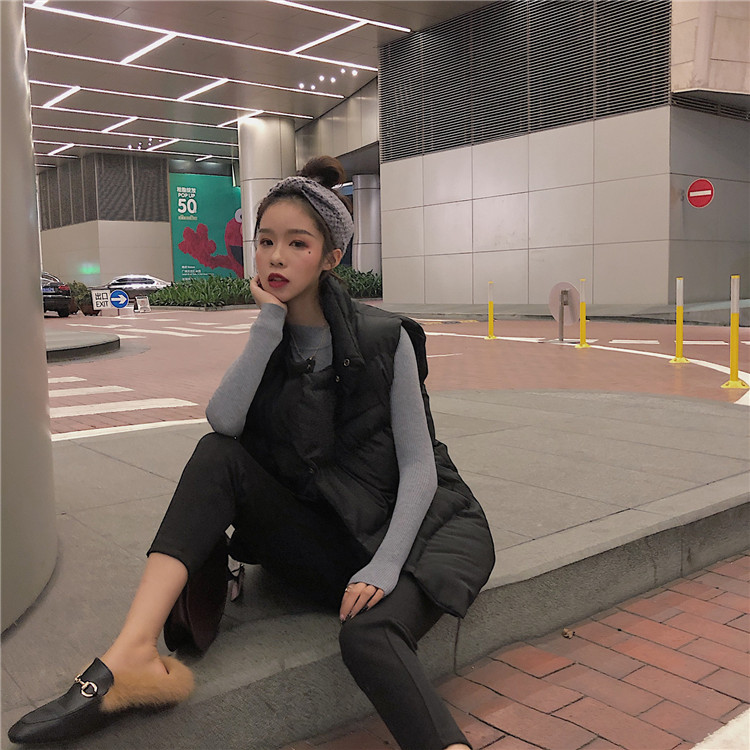 港味韓版秋裝女2018新款套裝棉衣馬甲+高領加厚打底針織衣兩件套
