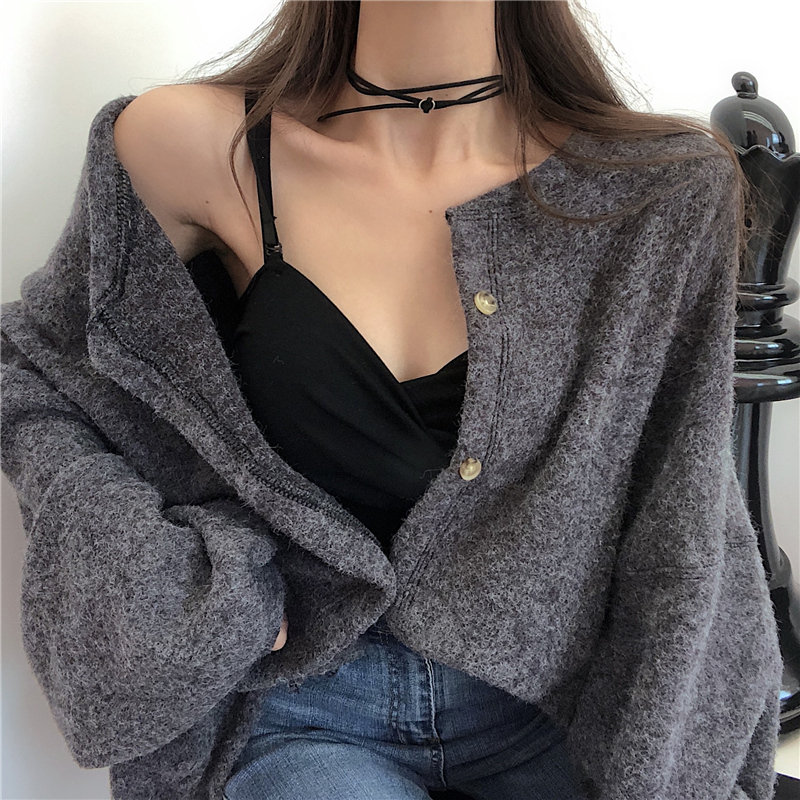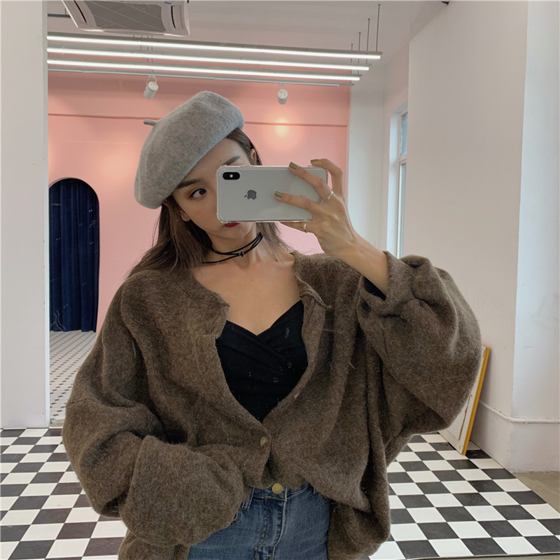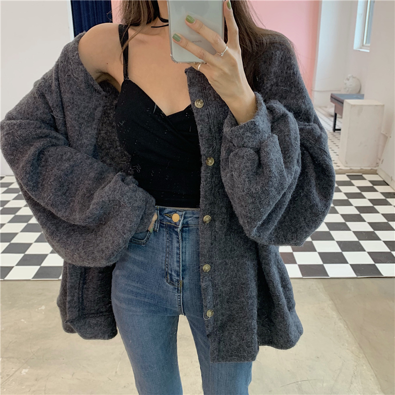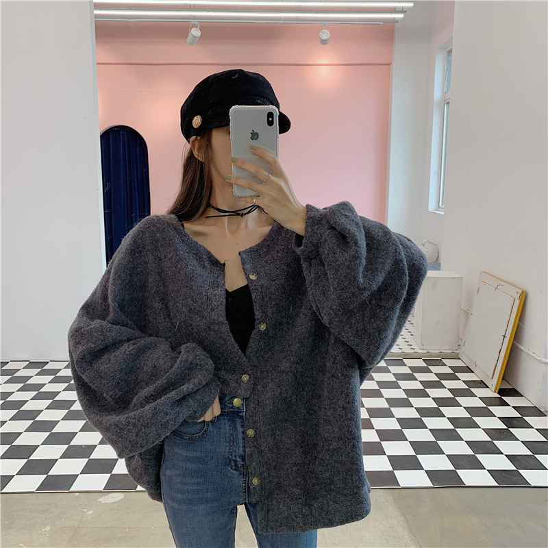 / 外套女秋冬2018新款韓版百搭款氣質蝙蝠袖寬松長袖單排扣開衫上衣