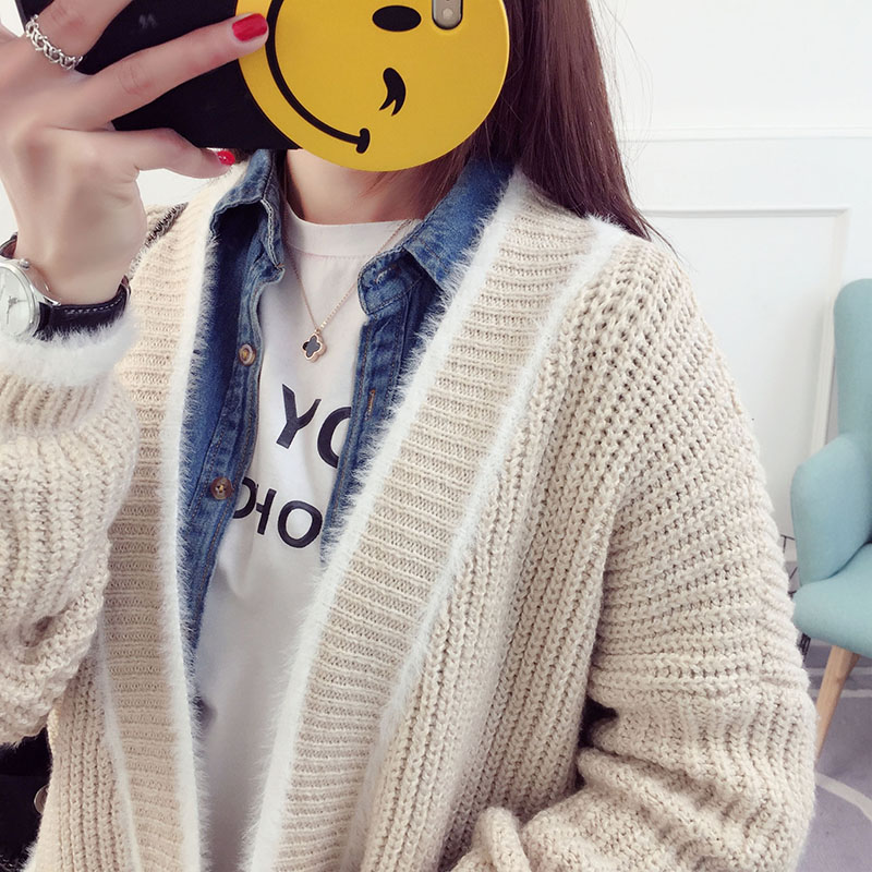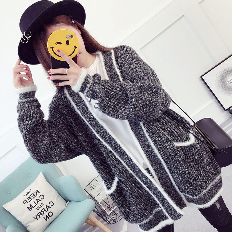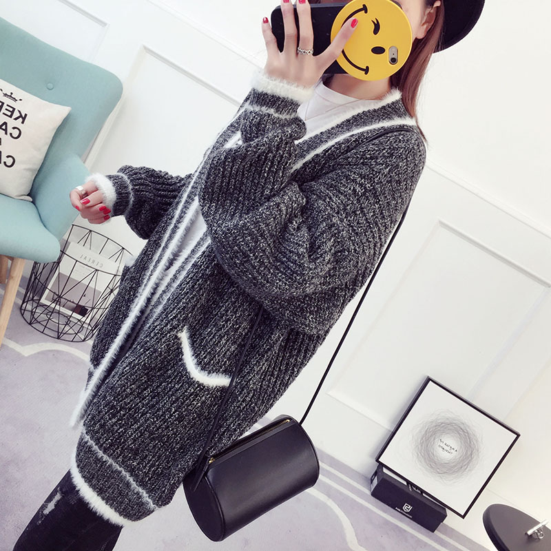 / 針織外套開衫毛衣女春秋中長款厚寬松韓版春秋冬學生百搭上衣