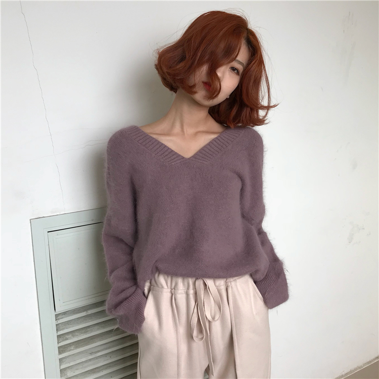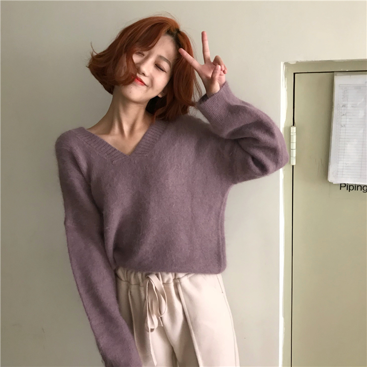 / 秋冬韓版寬松純色甜美小清新網紅馬海毛套頭針織衫毛衣上衣外套女