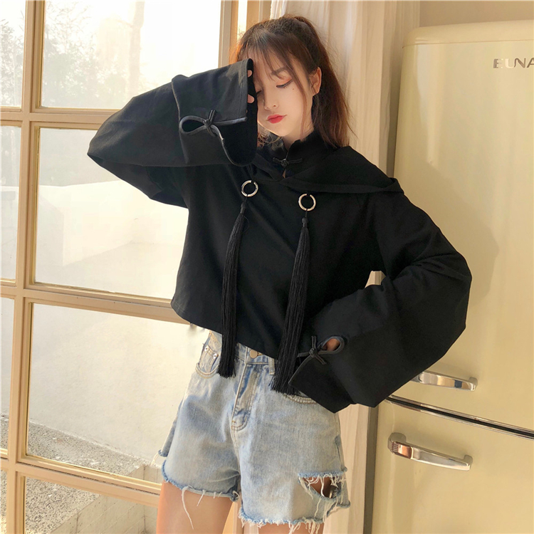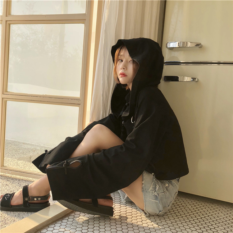 / 秋季女裝韓版復古文字刺繡短款BF風寬松連帽pp home衛衣上衣外套