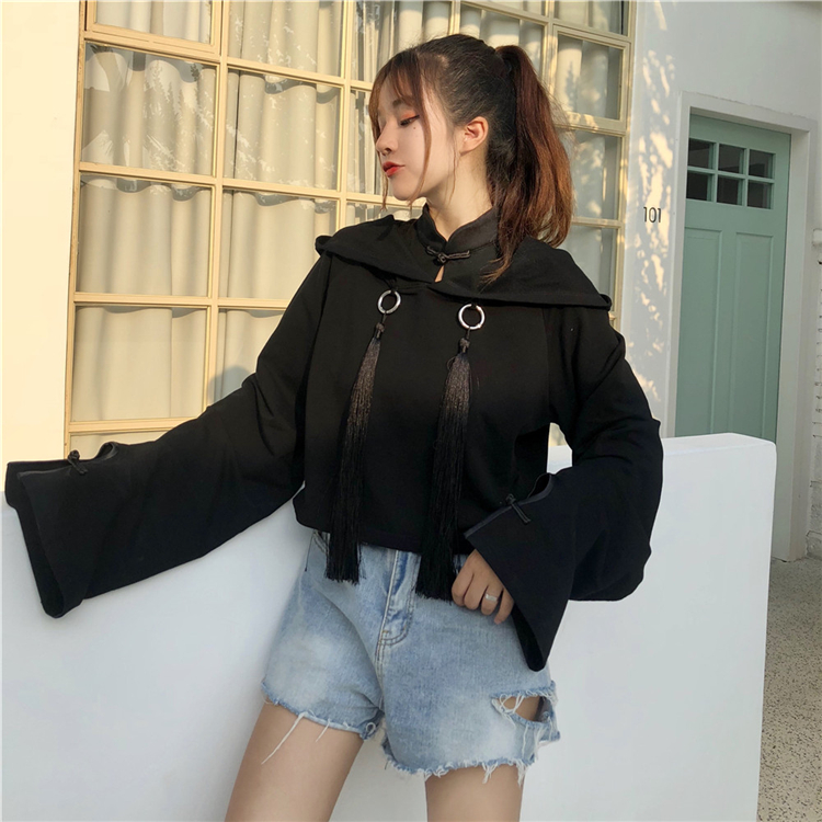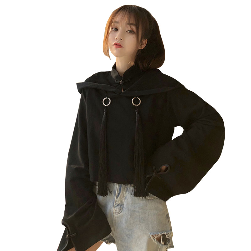 秋季女裝韓版復古文字刺繡短款BF風寬松連帽pp home衛衣上衣外套