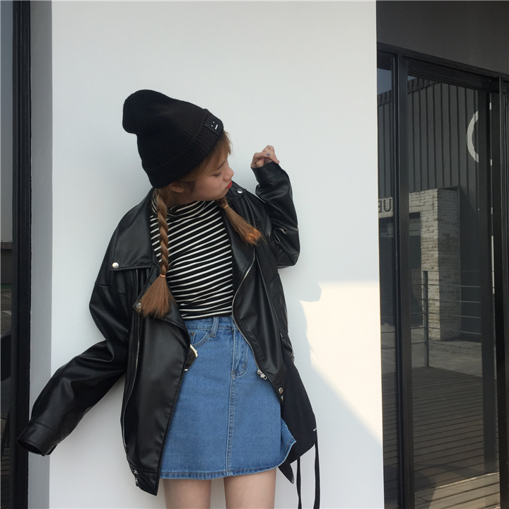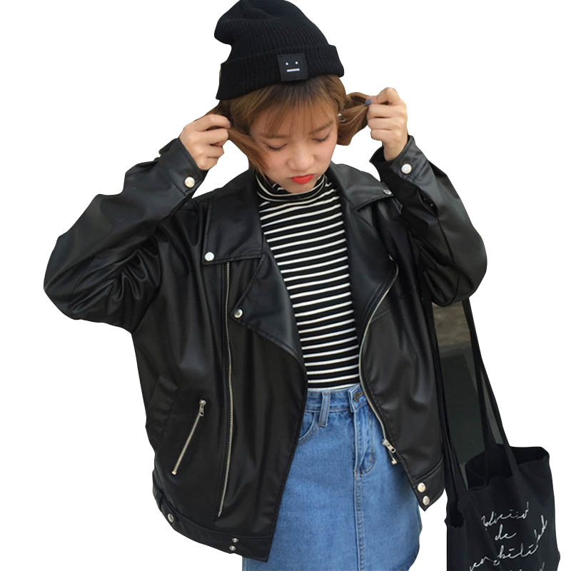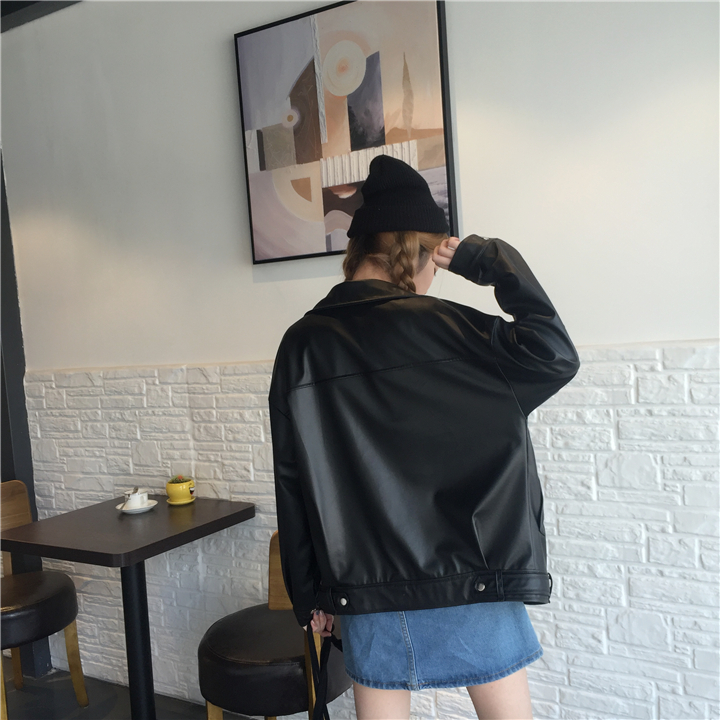 / 秋裝女裝新款韓版短款機車服寬松pu皮皮衣學生休閑夾克上衣外套潮