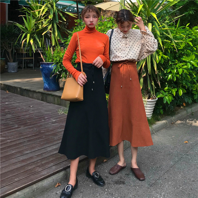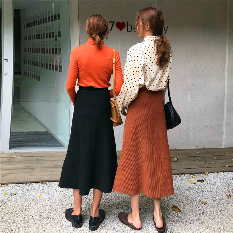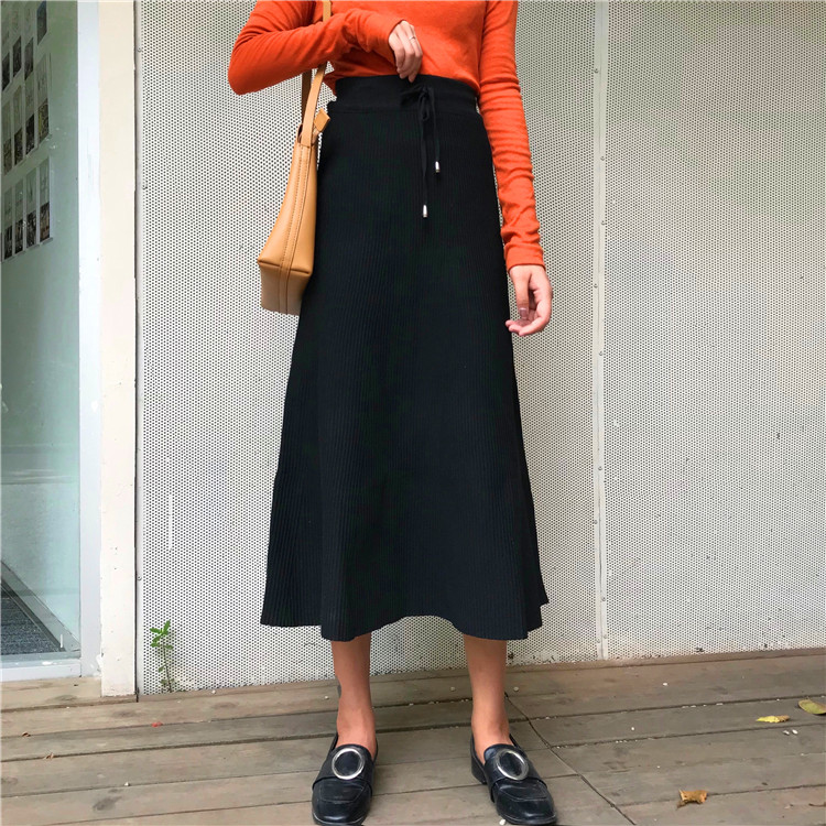 / 時尚中長款A字裙女秋冬裝2018新款韓版氣質高腰顯瘦針織半身裙子
