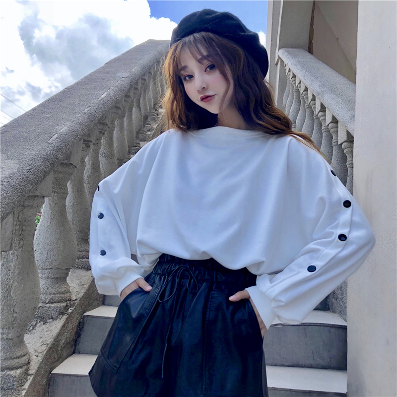 / 秋季女裝2018新款韓版寬松側邊扣長袖薄款松松垮垮超火酷衛衣外套