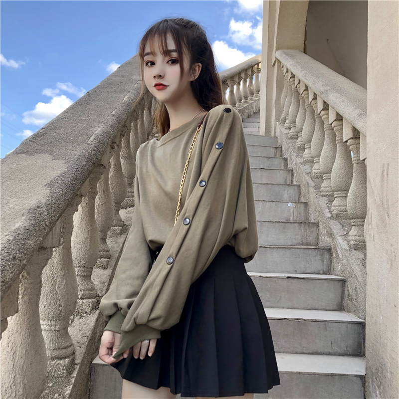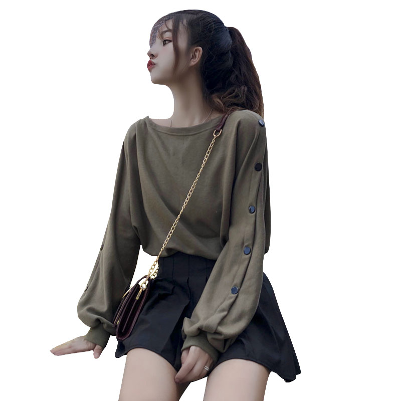 秋季女裝2018新款韓版寬松側邊扣長袖薄款松松垮垮超火酷衛衣外套