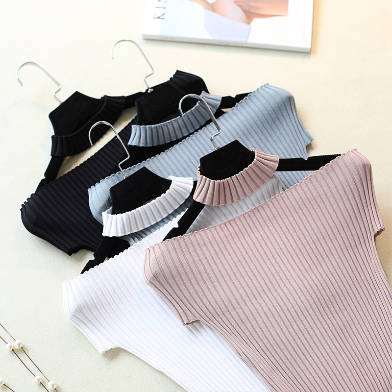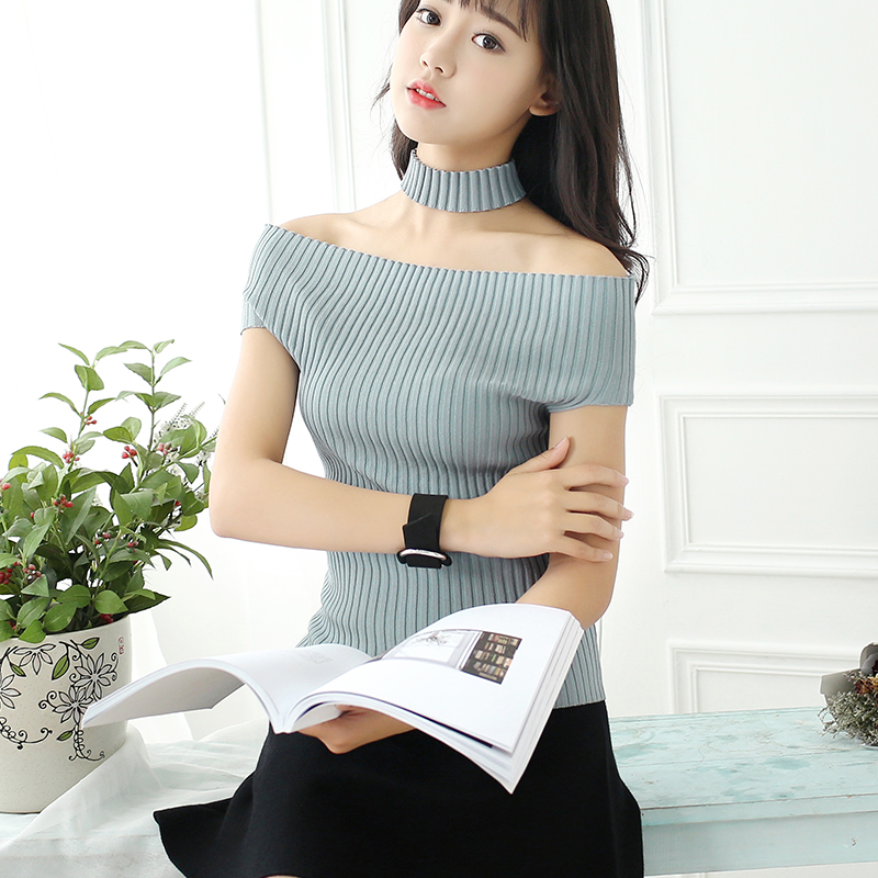 白色t恤女短袖夏修身露肩針織打底衫女短款純色百搭薄款體恤上衣
