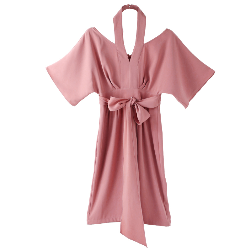 S秀時尚淑女氣質連衣裙女夏季2018新款名媛英倫風掛脖式中腰裙子