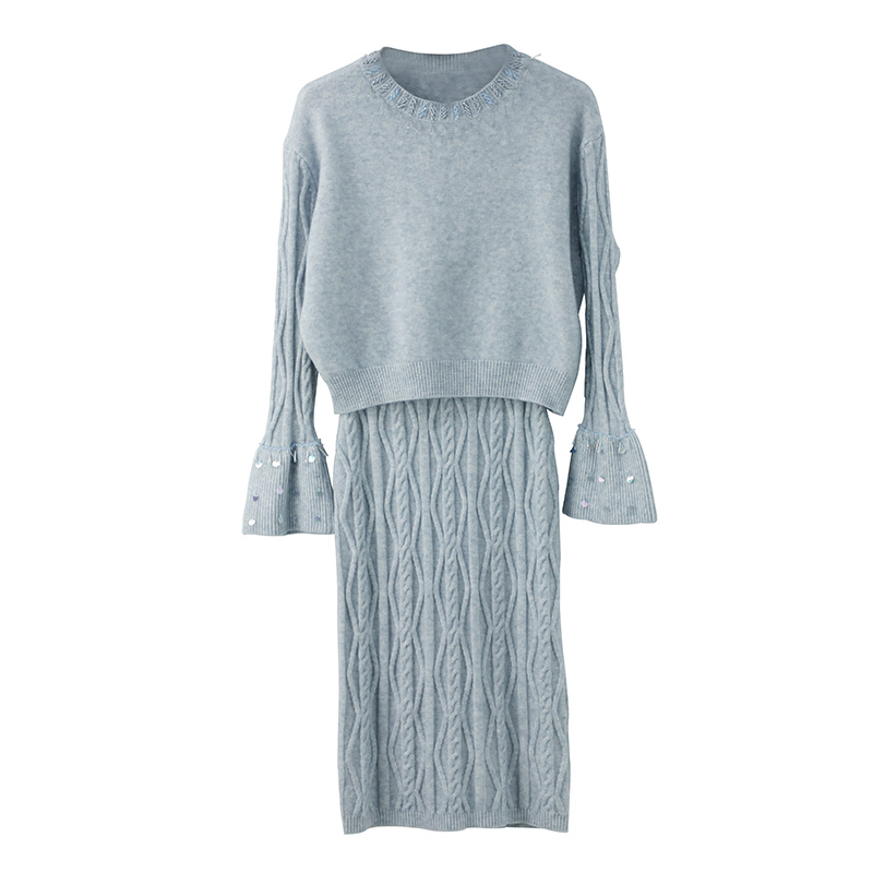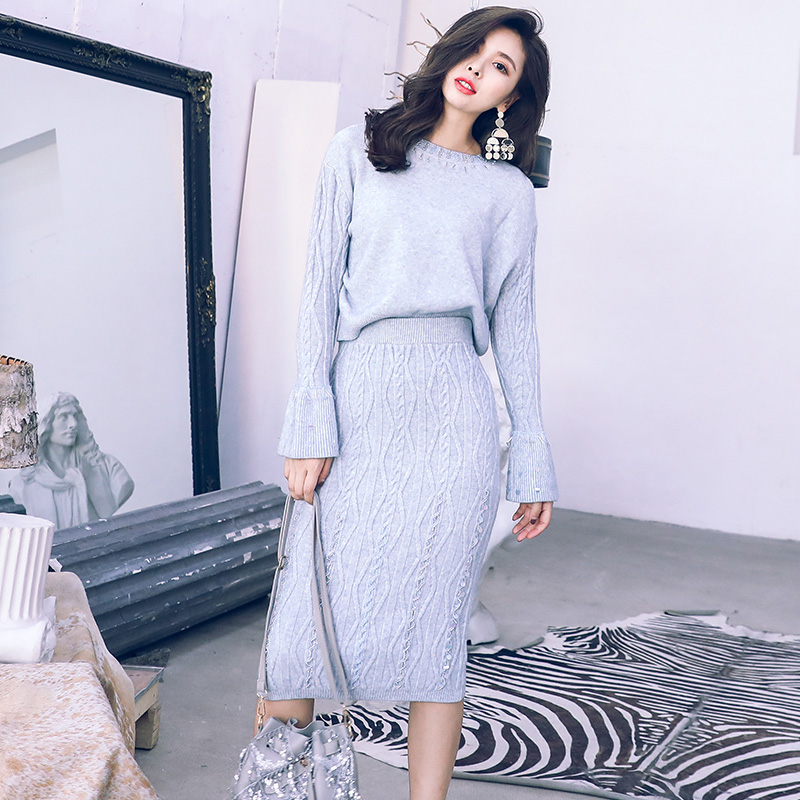 秋裝女毛線套裝裙2018冬新款針織衫時尚女裝打底毛衣加裙子兩件套