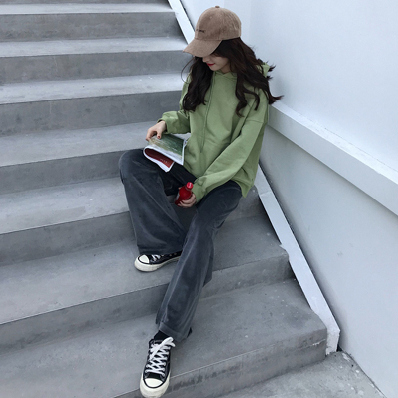 洋氣套裝女秋冬新款韓版簡約寬松連帽衛衣高腰顯瘦休閑闊腿長褲子