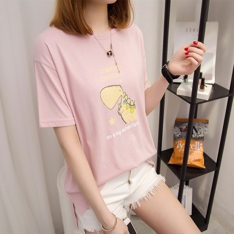 短袖t恤女寬松上衣女夏新款白色卡通打底體恤衫韓版衣服百搭