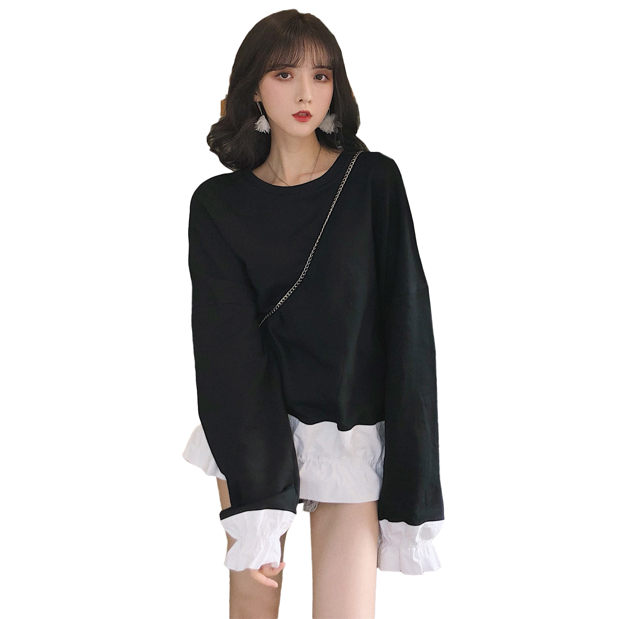 / 衛衣2018新款女韓版中長款套頭寬松oversize拼接假兩件撞色上衣潮