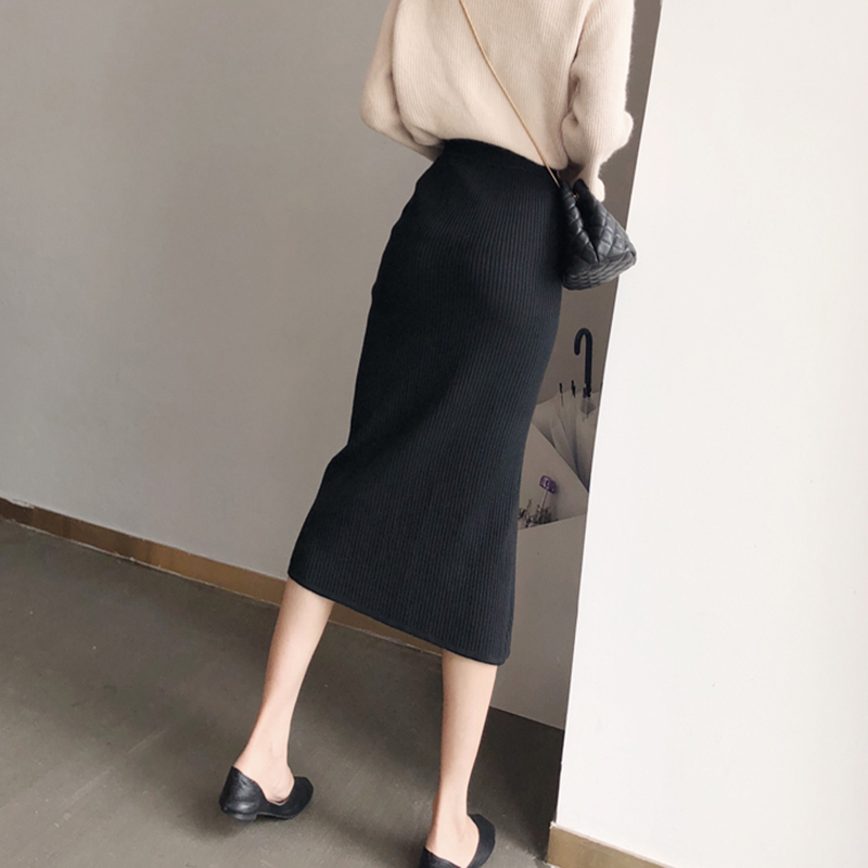 秋冬女裝2018新款學生復古風開叉黑色中長裙高腰顯瘦包臀半身裙子