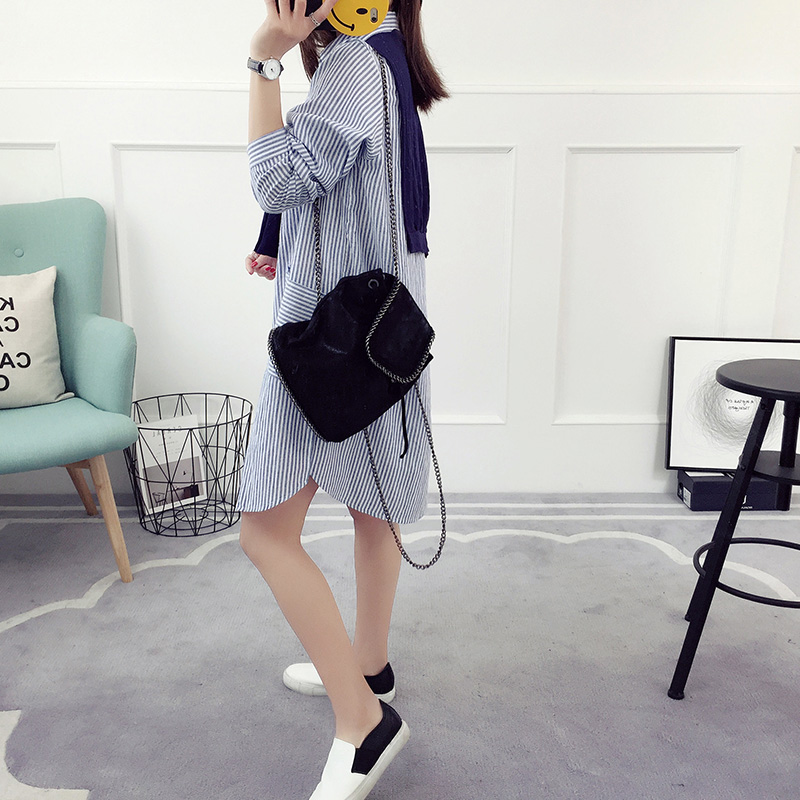 / 豎條紋襯衫女長袖春裝新款韓版假兩件上衣學生學院風韓范襯衣
