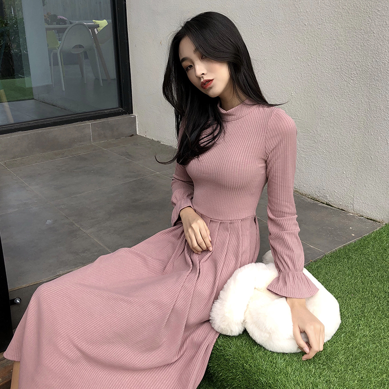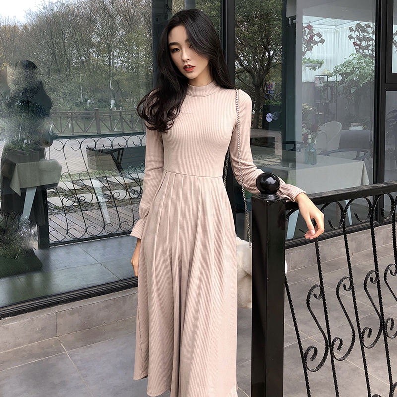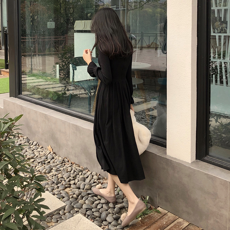 / 溫柔風小黑裙秋裝女新款修身顯瘦冷系大擺裙氣質長袖a字連衣裙子