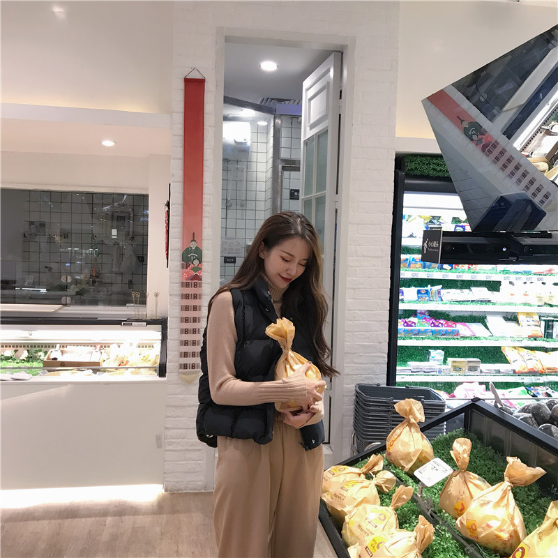 / 港味韓版秋裝女2018新款套裝棉衣馬甲+高領加厚打底針織衣兩件套