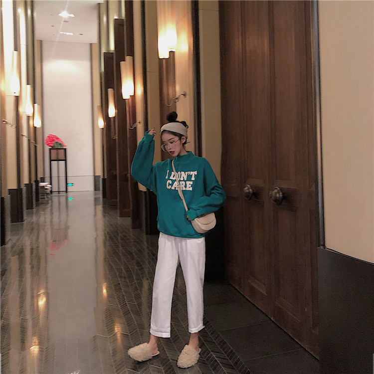 / 復古港風寬松印花堆堆領內搭字母長袖衛衣女秋冬2018新款打底上衣