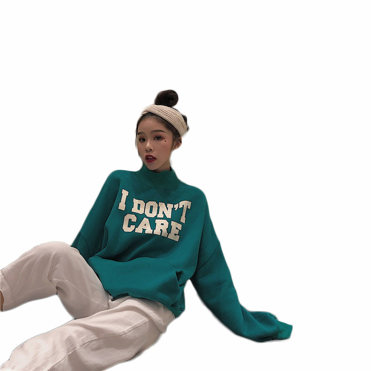 衛衣2018新款女長袖韓版寬松顯瘦oversize印花半高領慵懶長款裙子