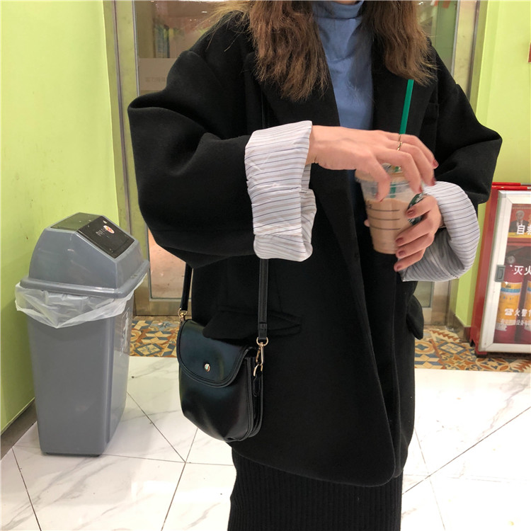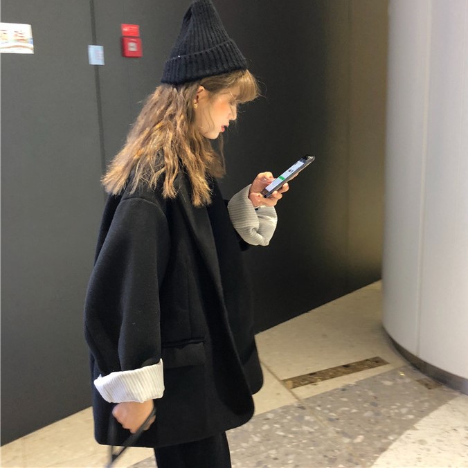 冬天冷一點 里面穿厚一些的毛衣啊做疊穿也wan全能包容下
