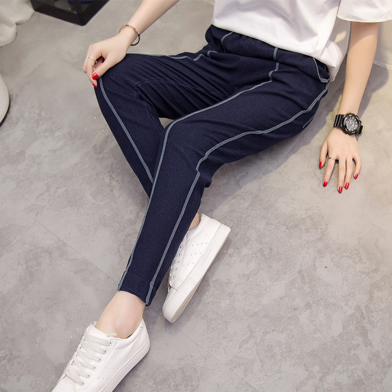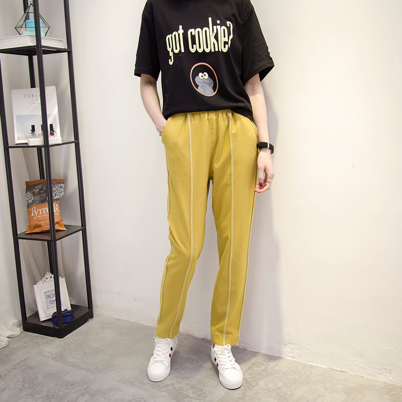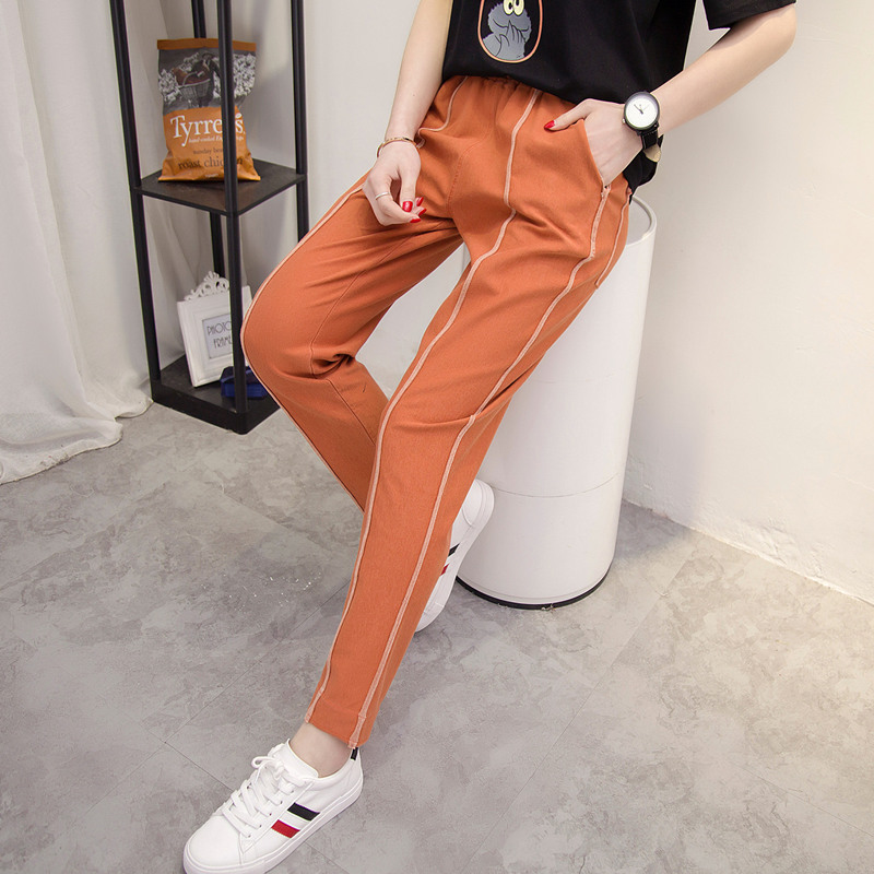 / 褲子新款女純色條紋九分褲女夏季寬松韓版低腰休閑百搭小腳褲