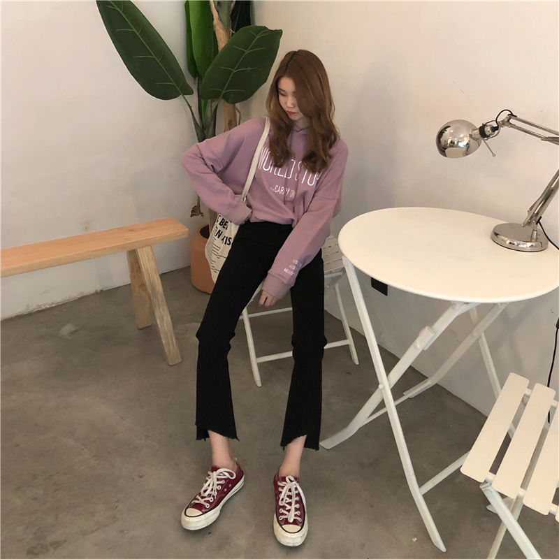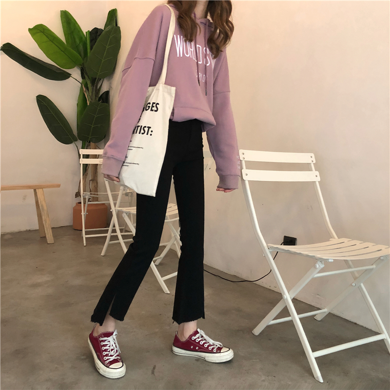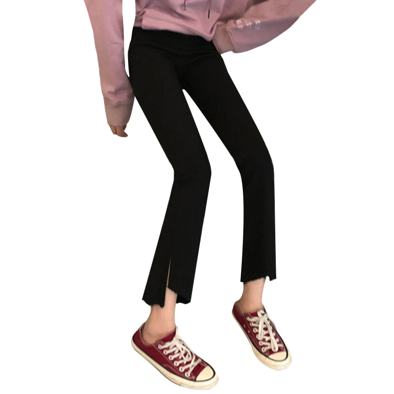 秋冬韓版彈力緊身喇叭褲高腰不規則直筒褲休閑褲九分褲學生褲子女