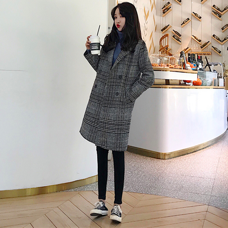 韓版2018流行寬松毛呢外套女秋冬裝新款呢子大衣中長款風衣外套潮