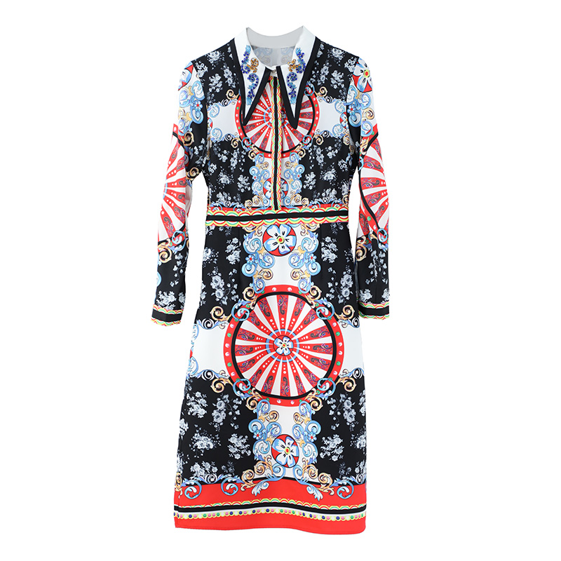 / 名媛氣質2018秋季新款歐洲站網紅港味復古印花顯瘦女神范連衣裙潮
