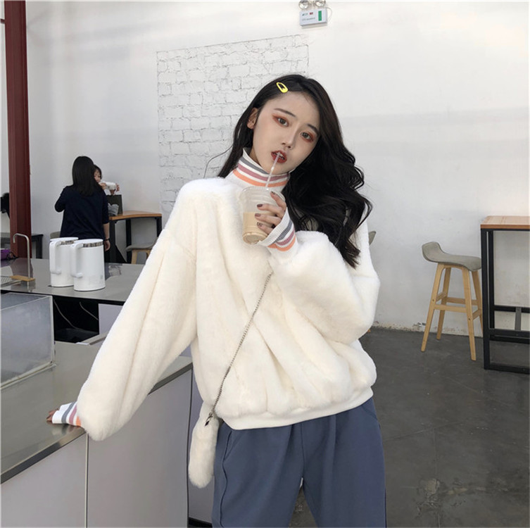 / 韓版百搭寬松加絨保暖時尚上衣長袖chic高領套頭毛毛衛衣女送包包
