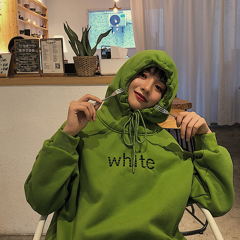 / 秋冬新款韓版女裝慵懶寬松加絨字母套頭衛衣女2018新款抽繩連帽衫