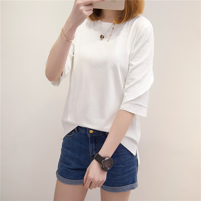 / 短袖上衣女夏新款春裝白色t恤女寬松韓版半袖百搭打底體恤衫