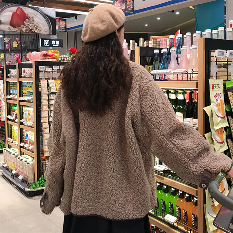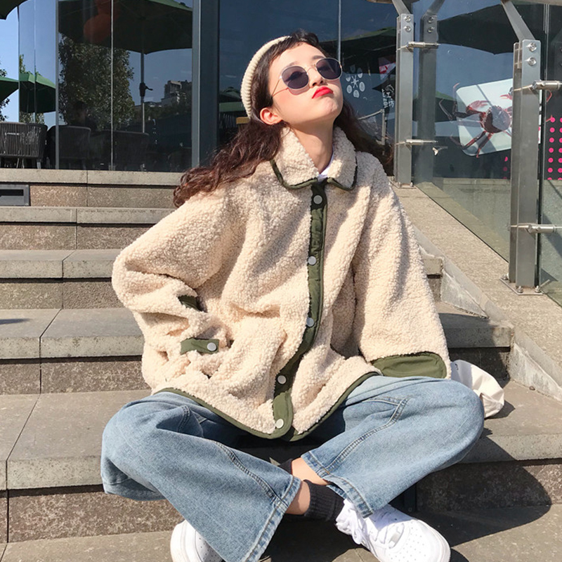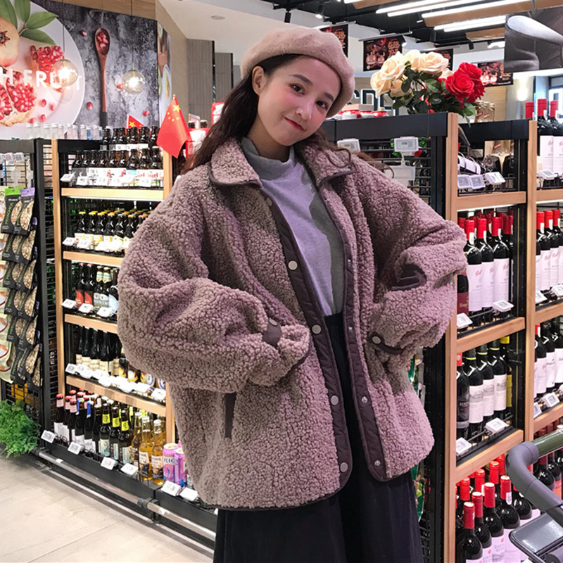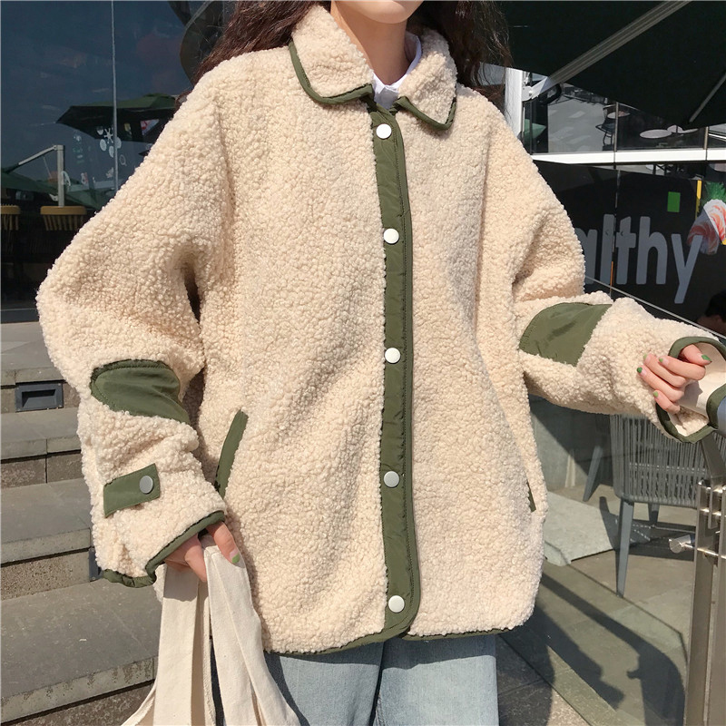 秋冬女裝2018新款韓版拼接仿羊羔毛翻領外套學生百搭寬松長袖上衣