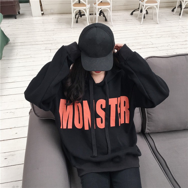 秋裝女2018新款韓版復古寬松百搭連帽字母印花加絨加厚衛衣女學生