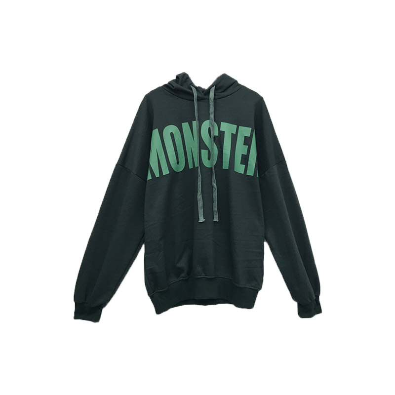 港味復古風秋裝女2018新款百搭帥氣黑色迷彩字母印花加絨套頭衛衣