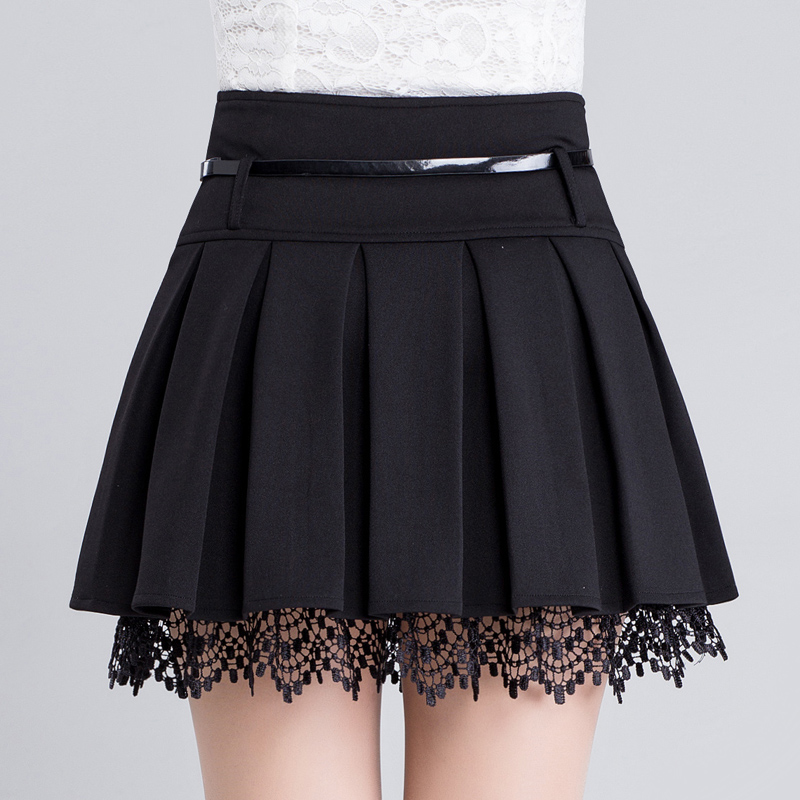 / 秋冬新款短裙半身裙女蕾絲百褶蓬蓬裙高腰A字裙子打底裙