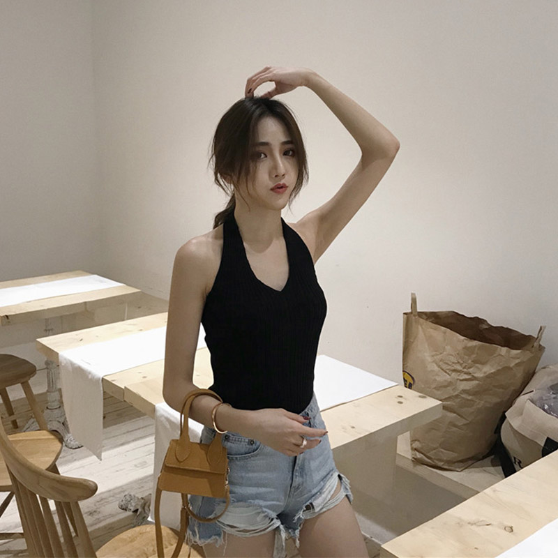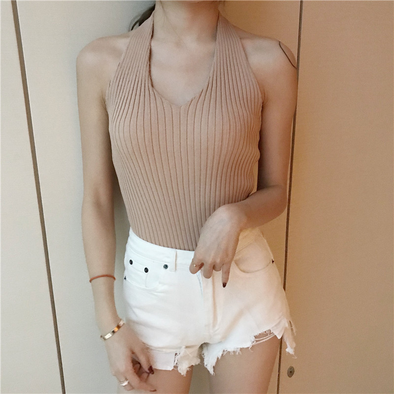 / 吊帶女夏2018新款修身無袖外穿背心百搭港味復古chic針織掛脖上衣
