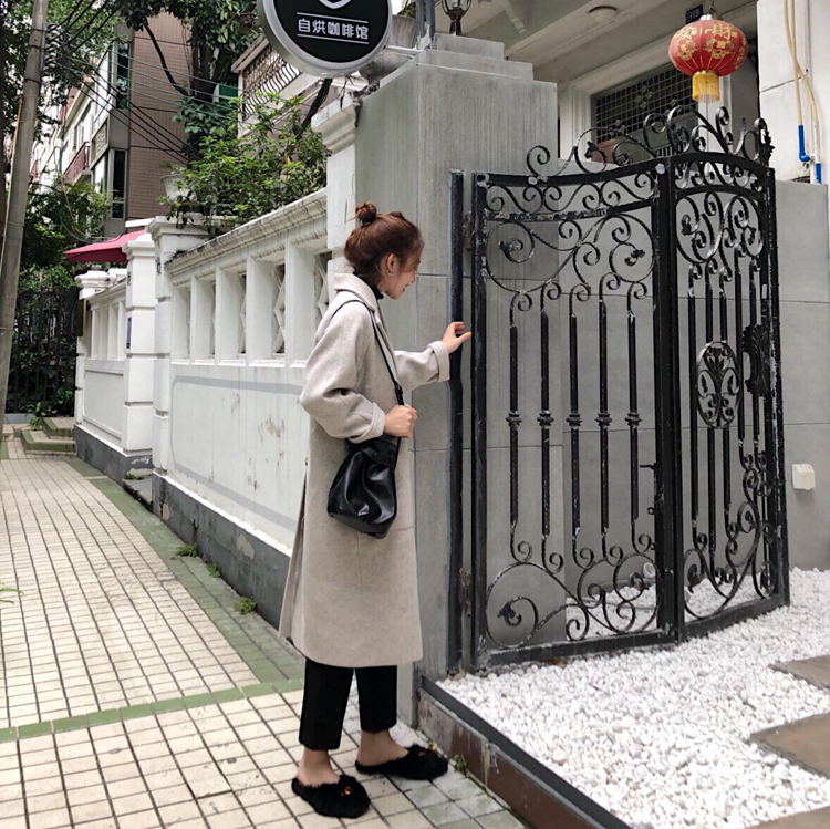復古溫柔慵懶風隨意暖色系百搭寬松中長款毛呢外套女韓版呢子大衣